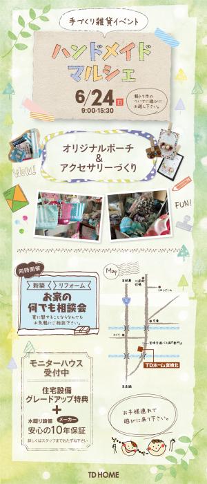 6/24に児湯郡川南町のTDホーム宮崎北にて手づくり雑貨イベント【ハンドメイドマルシェ】を開催致します。